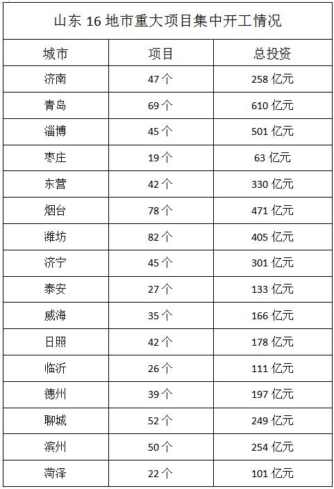 鲁网·泰山财经记者梳理发现,本次集中开工活动,青岛以610亿元总投资领跑全省,潍坊共有82个项目参加集中开工,数量居全省第一。
