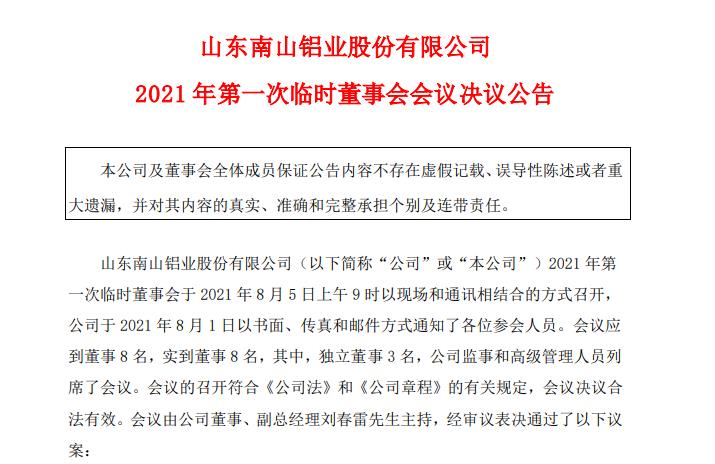 此外,南山铝业表示,因程仁策辞去公司所有职务,因此需增补董事一名。根据相关规定,经董事会提名委员会研究决定提名宋昌明为公司第十届董事会董事候选人。