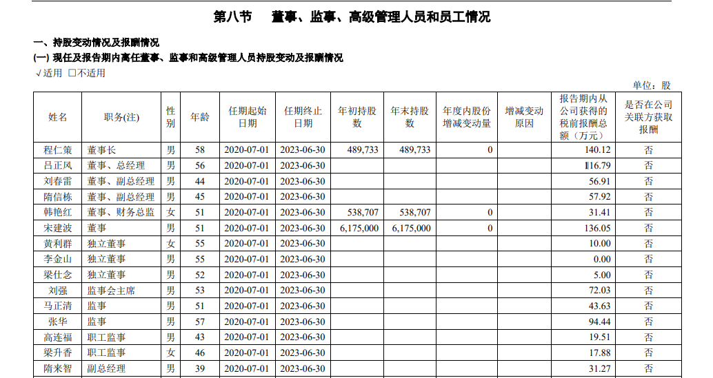 公告显示,程仁策因工作调整申请辞去南山铝业第十届董事会董事长、董事职务,辞职后程仁策先生不再担任公司的任何职务。截至目前,程仁策持有南山铝业 48.97万股股票。鲁网·泰山财经记者在南山铝业2020年报中注意到,程仁策去年薪酬140.12万元,其任期原至2023年6月底。