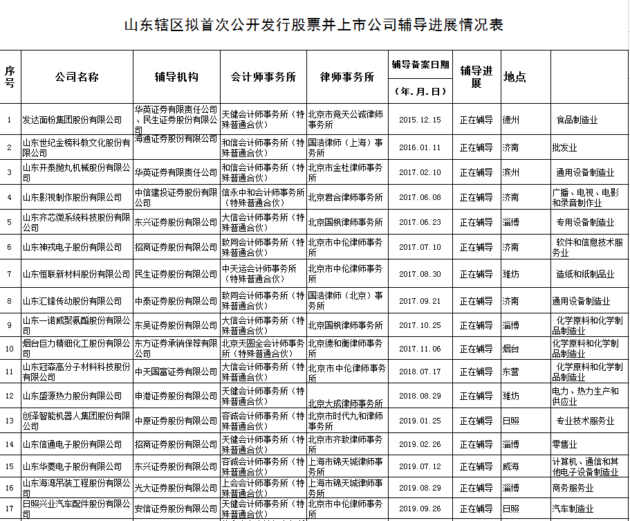 鲁网·泰山财经记者注意到,近半年内,除索力得、森峰激光和中加特3家企业外,还有96家鲁企在接受辅导,山东企业的IPO之旅或将在近期迎来一个高光时刻。