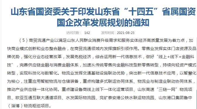 此外,《“十四五”山东省属国资国企改革规划》中也提出,商贸流通产业以满足山东人民群众消费升级需求和服务实体经济高质量发展为着力点,加快商业模式创新和业态整合融合,在商贸流通领域内发挥旗帜引领作用。零售业发挥实体门店资源及品牌优势,强化分业态经营改革,发展免税经济,综合运用新一代信息技术,做好“线上+线下+金融科技”,完善供应链金融与消费金融体系,加速从传统零售向金融科技型新零售转型,持续向轻资产模式转型,实现科技化与数智化。值得一提的是,此次重点建设项目包括鲁商线上线下一体化运营项目等6项目。