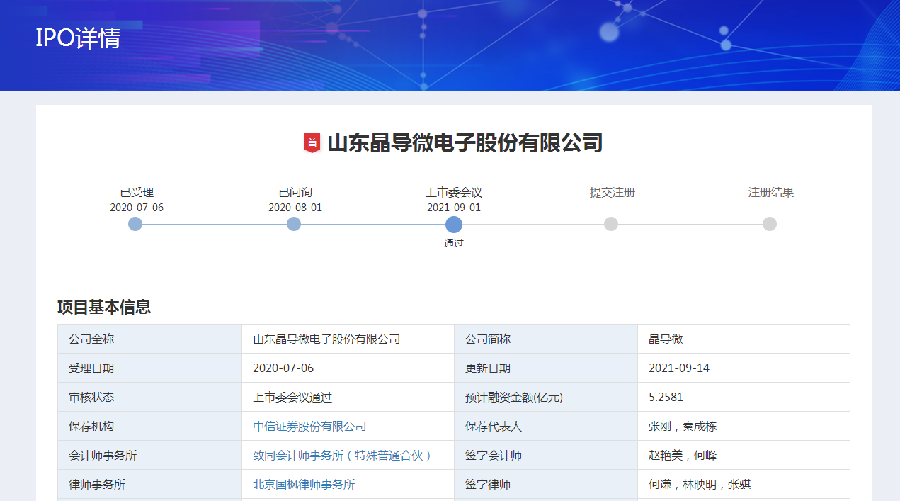 鲁网·泰山财经记者于深圳证券交易所获悉,山东晶导微电子股份有限公司(简称“晶导微”)已通过上市委会议。据悉,本次发行不超过4845.55万股,拟募资约5.26亿元用于“集成电路系统级封装及测试产业化建设项目”二期项目。
