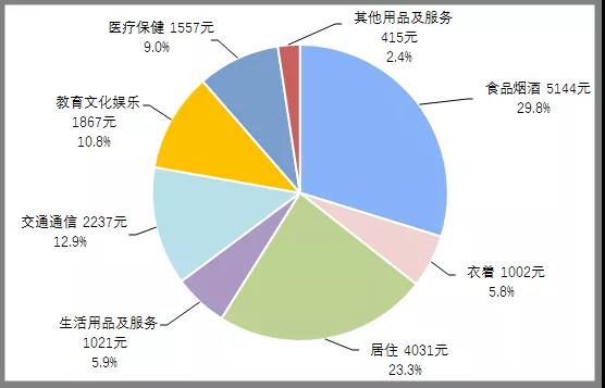 分城乡看,城镇居民人均消费支出21981元,增长14.2%,扣除价格因素,实际增长13.4%;农村居民人均消费支出11179元,增长18.6%,扣除价格因素,实际增长18.1%。