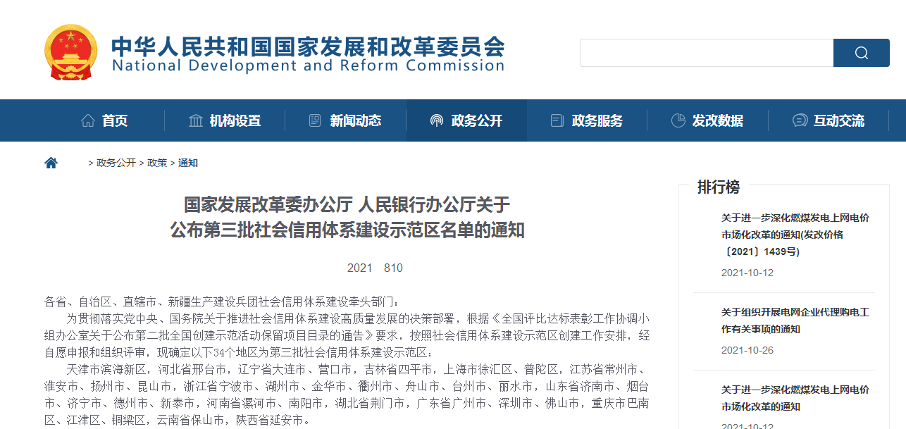 鲁网·泰山财经记者于国家发改委官网获悉,国家发展改革委办公厅、人民银行办公厅近日联合公布了第三批社会信用体系建设示范区名单,其中山东省济南市、烟台市、济宁市、德州市、新泰市入选。