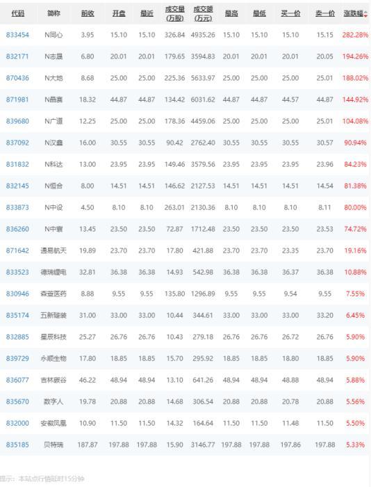 北交所网站披露的行情信息。
