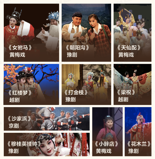 最受网友欢迎的非遗剧目有黄梅戏《女驸马》、《天仙配》、《小辞店》,豫剧《朝阳沟》、《打金枝》、《穆桂英挂帅》、《花木兰》,越剧《红楼梦》、《梁祝》以及京剧《沙家浜》。