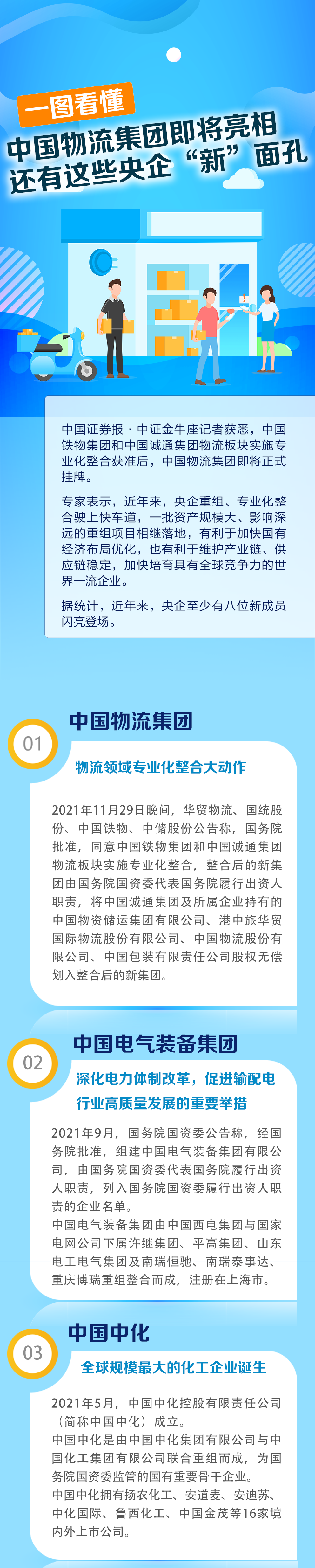 据了解,新组建的中国物流集团由原中国铁路物资集团有限公司,与中国诚通控股集团有限公司物流板块的中国物资储运集团有限公司、华贸国际物流股份有限公司、中国物流股份有限公司、中国包装有限责任公司4家企业为基础整合而成。同步引入中国东方航空集团有限公司、中国远洋海运集团有限公司、招商局集团有限公司作为战略投资者,形成紧密战略协同。