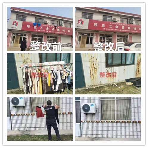 城管工作人员沿104国道及镇区迎新大街、迎宾大街、顺平路、顺安路等,加强对违规横幅、广告乱吊挂,居民衣物、被褥在公共设施上随意晾晒等行为巡查,规范临街居民楼房阳台外乱挂衣物现象,拆除违规捆绑、安装的晾衣绳索、铁丝,对在临街建筑物阳台外、门窗外吊挂杂物、晾晒衣服、被褥等有碍市容的行为进行教育引导,耐心讲解相关政策,获得居民认可,提高居民意识,引导动员市民群众进行自改,培养良好习惯。