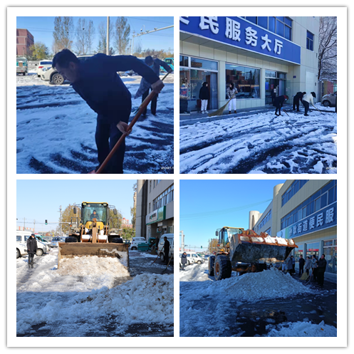 街道主要领导带头,全员参与,分区域同时清除积雪。在街道大院和正安广场,机关干部们拿着扫雪工具,铲的铲,扫的扫,大家争先恐后,干劲十足。在与环卫工人的密切配合下,经过近1个小时的奋战,积雪被基本清扫干净。在便民服务大厅门前,一个“大家伙”轰轰作响,原来是为了加快除雪速度,为群众前来办理业务提供安全保障环境,街道调来铲车清除门前结冰路面,三下五除二,一会功夫,便民服务大厅门前的积雪和冰面就被清理干净。在管区楼前,机关干部们齐心协力,一鼓作气,铲冰除雪,确保道路通畅。
