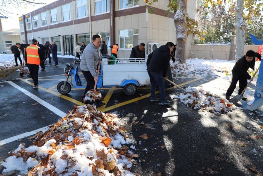 近日的暴雪天气,积雪深度将近20厘米,道路积雪,加之部分路段结冰,严重影响交通出行安全,8日一早,孙耿街道组织全体机关干部清除公共区域积雪,全力以赴除冰雪、保安全、保畅通。