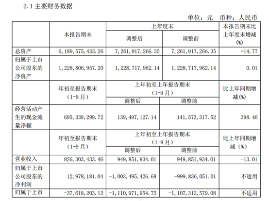 记者查阅ST天业第三季报发现,截止到第三季度,ST 天业总资产为61.90亿元,同比去年下降14.77%;其中归母净资产为12.29亿元,同比去年增长0.01%。虽然营收8.26亿元同比去年下降13.01%,但今年ST天业的盈利和现金流情况得到了极大改善。截止本年第三季度,ST天业的现金流净额为6.95亿元,同比去年增长398.46%;归母净利润达1297.82万元,该数值在去年是-10.03亿元。