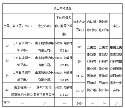 记者从山东省工业和信息化厅官网公告获悉,山东魏桥铝电有限公司(简称“魏桥铝电”)及旗下公司位于滨州的203万吨电解铝产能退出,启动拆除和到位时间将在云南宏泰新型材料有限公司(简称“云南宏泰”)置换项目建成投产前。