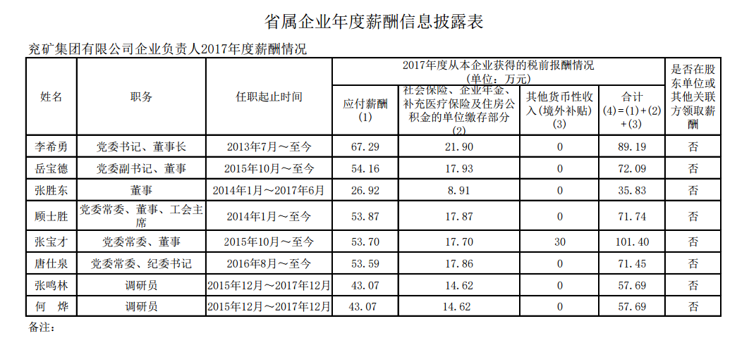 值得注意的是,在此次薪酬披露中,董事长低于60万年薪的企业仅一家,为深圳东华。兖矿集团的状况也值得令人探究,因为它是所有披露薪酬企业中唯一一家,企业高管的薪资大于董事长薪资的企业。兖矿集团党委常委、董事张宝才年薪为101.40万元,比兖矿集团的董事长李希勇高了10余万元。