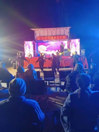 当晚7时许,朱家村文化广场人头攒动、热闹非凡,听说这里即将举办文艺汇演,本村及周围村不少村民早早来到了现场,等待观看这场视听盛宴。演出在歌曲《黄河源头》中拉开帷幕,嘹亮甜美的歌曲《天路》《中国心》《老婆与老妈》《感到幸福你就拍拍手》《敖包相会》和豫剧《朝阳沟》、河北梆子《大登殿》等节目轮番上演,迅速将晚会气氛推向高潮;紧接着扣人心弦的魔术表演震撼全场,令人拍案叫绝;天真活泼的少儿舞蹈、乐器独奏《北京的金山上》《儿女情》表现出朱家村青少年的沉稳与自信、激情与勇气;小品《小拜年》以现实为灵感,原创的剧情引起了现场观众的共鸣;舞蹈《中国美》飘逸优美,精彩的表演让人应接不暇,现场掌声连连。最后,晚会在歌曲《难忘今宵》中落下了帷幕。欢笑的人儿,激情的音乐,高亢的歌声此起彼伏,幸福洋溢在每一位村民的脸上。