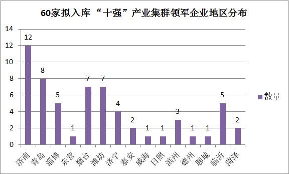 据公布名单显示,济南有浪潮集团有限公司、中国重型汽车集团有限公司、齐鲁制药有限公司、齐鲁动物保健品有限公司等12家上榜“十强”企业,占比重较大的行业为新一代信息技术行业。青岛有8家企业上榜,以新一代信息技术和高端装备行业为主的企业最多;烟台和潍坊各自都有7家企业上榜,烟台以高端装备和新材料为主企业最多,潍坊以高效农业为主企业最多;临沂和淄博各有5家企业上榜,临沂和淄博都以医养健康为主的企业最多;济宁有4家上榜企业;滨州有3家企业上榜;泰安和菏泽各有2家上榜企业;此外,东营、威海、日照、德州和聊城上榜企业都仅有1家。
