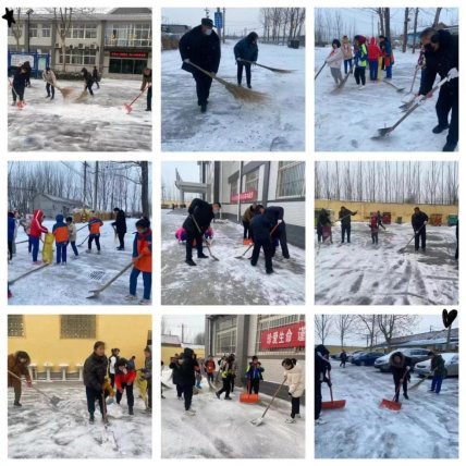 除雪过程中,老师们挥舞着手中的铁铲和扫帚,对校园主要公共区域进行铲雪除冰。一个多小时的除雪工作,展现了老师们团结协作的工作氛围,展现出老师们爱校如家的工作态度,老师们用实际行动践行着作为一名人民教师的高尚师德。