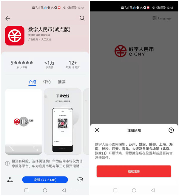 官方介绍,数字人民币(试点版)App 是中国法定数字货币 —— 数字人民币面向个人用户开展试点的官方服务平台,提供数字人民币个人钱包的开通与管理、数字人民币的兑换与流通服务。数字人民币仍处于研发过程中的常规测试阶段,运营机构在试点地区和试点场景拓展的白名单用户可注册数字人民币 App。