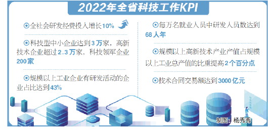根据日前发布的《山东省“十四五”科技创新规划》,到2025年,山东要基本建成高水平创新型省份;到2035年,要建成高水平创新型省份和科教强省、人才强省。向着这一总目标,2022年全省科技工作将全力达成以下关键指标:全社会研发经费投入增长10%;科技型中小企业达到3万家,高新技术企业超过2.3万家,科技领军企业200家;规模以上工业企业有研发活动的企业占比达到43%;每万名就业人员中研发人员数达到68人年;规模以上高新技术产业产值占规模以上工业总产值的比重提高2个百分点;技术合同交易额达到3000亿元。