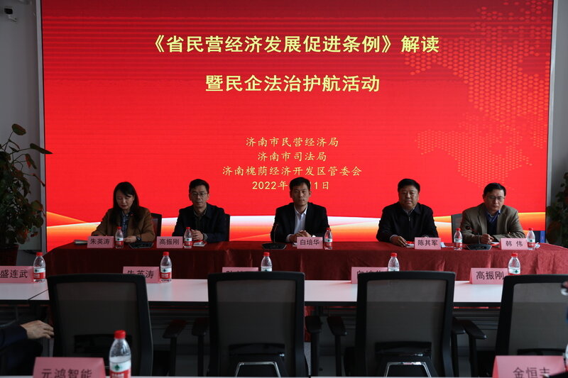 活动中,山东省工业和信息化厅白培华同志对新出台的《山东省民营经济发展促进条例》进行了深入解读,对民营企业关心关注的惠企政策与企业家们进行了探讨交流。济南市律师协会组织律师对合同签订等民营企业风险防控进行案例分析及授课,对民营企业家在经营决策中出现的法律风险防控问题进行了现场解答。