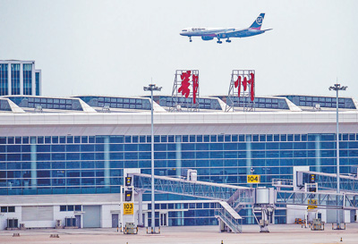 图为3月19日,试飞的货运飞机在鄂州花湖机场上空。 |