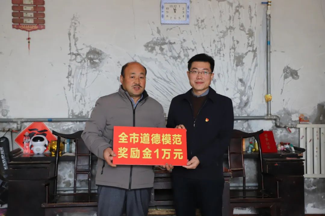 鲁网3月22日讯 3月21日上午,济南市新旧动能转换起步区宣传网信处副处长、融媒体中心副主任王善龙带队,为孙耿街道2名第八届济南市道德模范送去证书及奖励金,街道分管领导陪同走访。