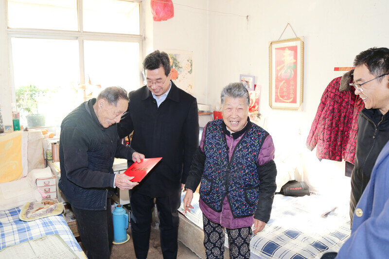 在99岁的离休干部孙乃廉家中,曹发伟一行详细询问了他的身体状况和家庭情况,祝愿他健康长寿,生活幸福,度过一个欢乐祥和的春节。