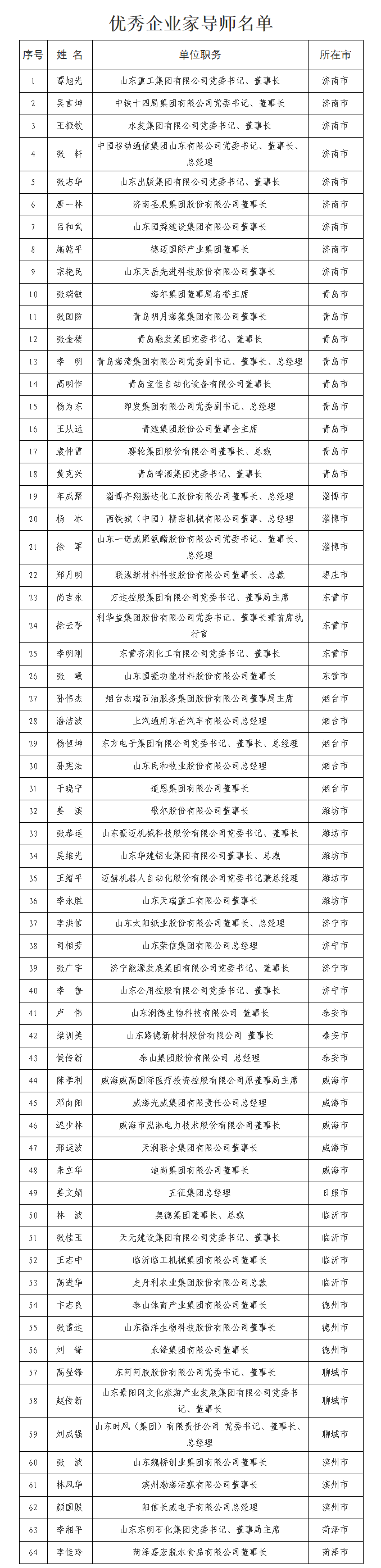 鲁网·泰山财经5月16日讯(记者 于雅雯)谭旭光、张瑞敏、张波等64名山东优秀企业家要收徒了!