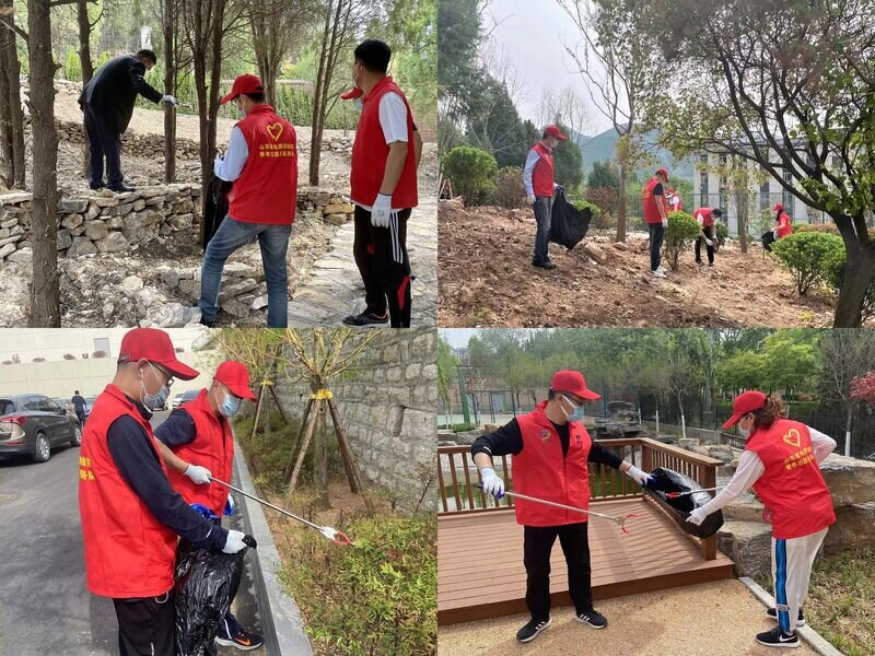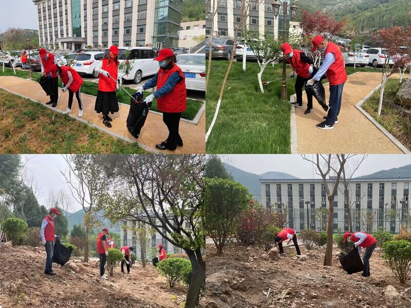 活动中,志愿者们身着红色马甲,手拿夹子、垃圾袋等清洁工具,两人一组,三人一行,对整个办公院落的花坛、边坡、停车场、小公园等卫生死角的果皮、纸屑、烟头、饮料瓶、枯树枝等废弃物进行了集中清捡。