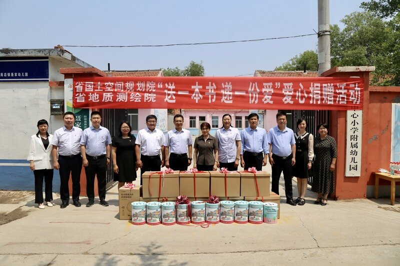 近日,省地质测绘院党委委员、副院长、工会主席张建芳,省国土空间规划院党委委员、纪委书记李月霞一行11人赴滨州市阳信县商店镇开展“爱心传递 技术赋能”主题党日活动、“送一本书、递一份爱”爱心捐赠活动。阳信县委副书记夏庆山,滨州市自然资源规划局党组成员、副局长丁海廷,商店镇党委书记王义刚及相关负责人参加座谈。
