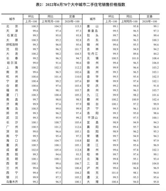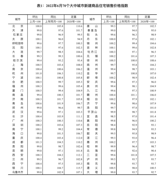国家统计局城市司首席统计师绳国庆解读称,2022年6月份,70个大中城市商品住宅销售价格环比总体趋稳,环比上涨城市个数增加,同比继续走低,同比上涨城市个数减少。