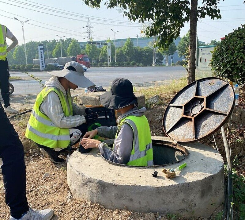 探测设备易受环境影响,在需多次换接阀门井复测保证精度的同时必须保证每日工作进度,这就要求外业队员们需要下井作业连接仪器。