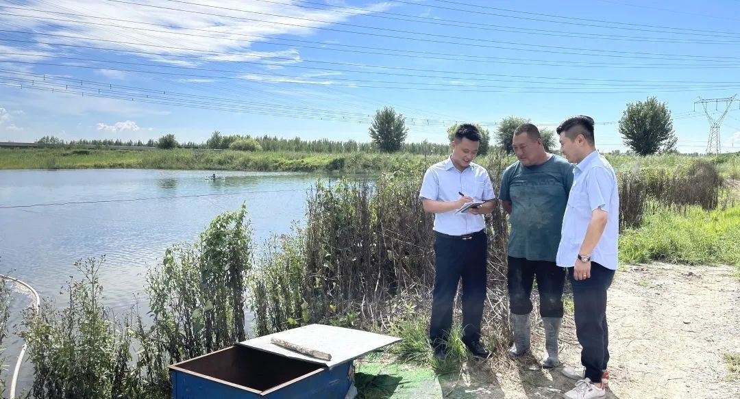 邮储银行天津分行客户经理在水产养殖农户的经营场所进行贷前调查