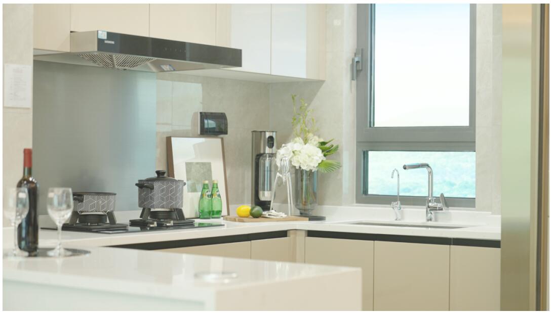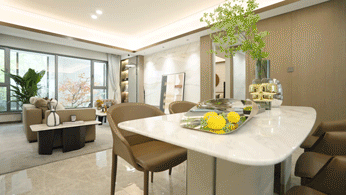 吧台陪伴式中西双厨房,半开放式厨房设计,打破沉闷感;套房式主卧,带独立卫浴、瞰景飘窗,奢侈配置上演是从容不迫的生活节奏。