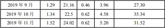 销售价格的降低并没有导致龙大肉食11月份销售收入减少,与10月份相比,销售量上涨13.43%,销售收入达到持平状态。
