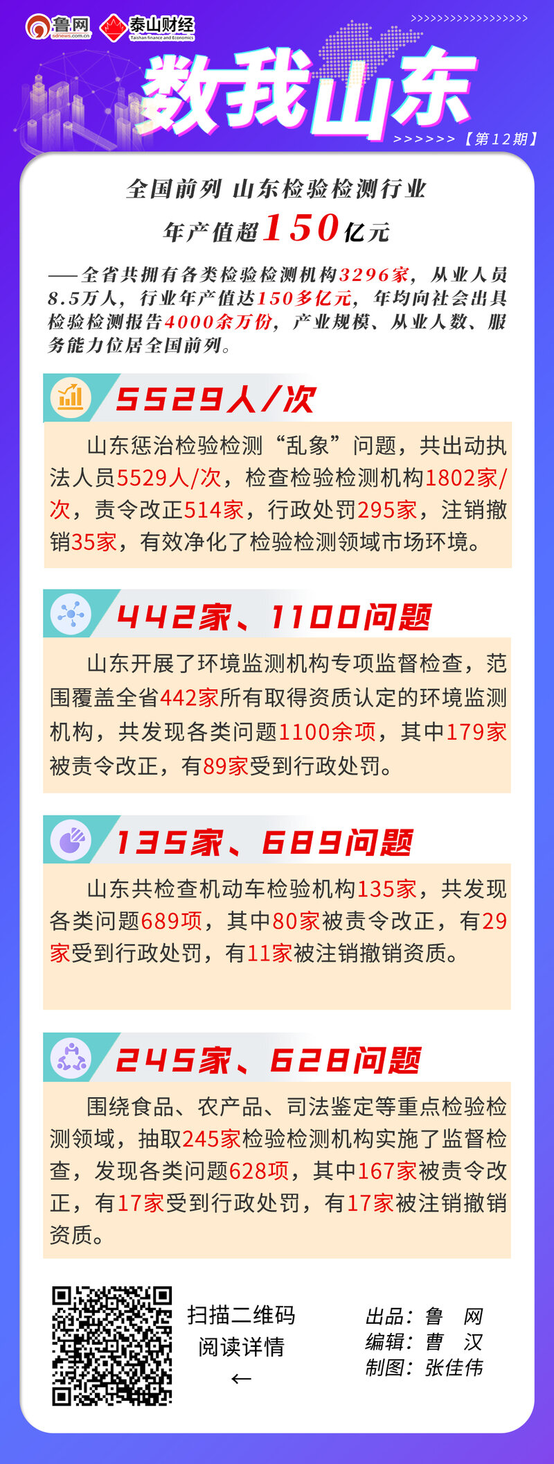 用数据说话!数字图解栏目《数我山东》系鲁网“这就是山东”网络主题系列策划之一。《数我山东》通过搜集、整理山东经济、文化、民生等领域的权威数据,用最直观的“数字”为素材,分门别类制作成图示,呈现更加可视化、结构化的“山东数据简历”,帮助网友形象生动地从多个维度了认识山东,认可山东,认同山东。