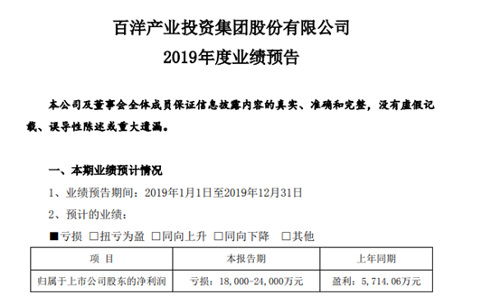 据今年12月19日百洋股份披露的2019年度业绩预告来看,2019年百洋股份的归母净利润呈亏损状态,预计亏损1.8亿-2.4亿元,2016-2018年,百洋股份的归母净利润分别为5925.59万元、1.13亿元与5714.06万元,这意味着,2019年百洋股份的利润亏损值可能一次性覆盖掉其公司前三年净利润的盈利值。