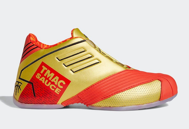 · TMAC 1: 联名款TMAC 1 采用金属色鞋面,搭配红色细节,外底缀金色拱门印花,致敬巨无霸酱——风靡全球的巨无霸汉堡的独特酱料。同时该鞋款也蕴含麦蒂独特 “风味配方” :干拔跳投、三分球、背身单打。