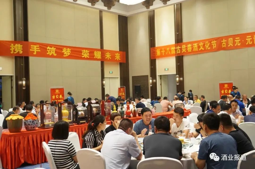 与会嘉宾把酒言欢,共同品鉴古贝元酱香美酒,感受酱香酒的魅力!