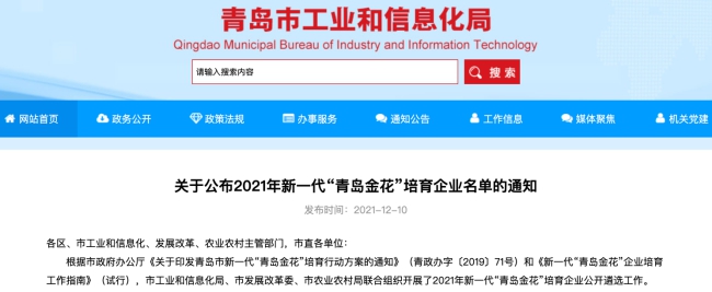 鲁网12月14日讯 日前,青岛市工业和信息化局发布《关于公布2021年新一代“青岛金花”培育企业名单的通知》。经企业申报、区(市)推荐、专家评审,青岛百洋医药股份有限公司(以下称“百洋医药”)成功入选服务业类企业名单,成为重点培育的新一代“青岛金花”之一。值得关注的是,此次为百洋医药继2020年入选该名单后,连续第二年上榜。