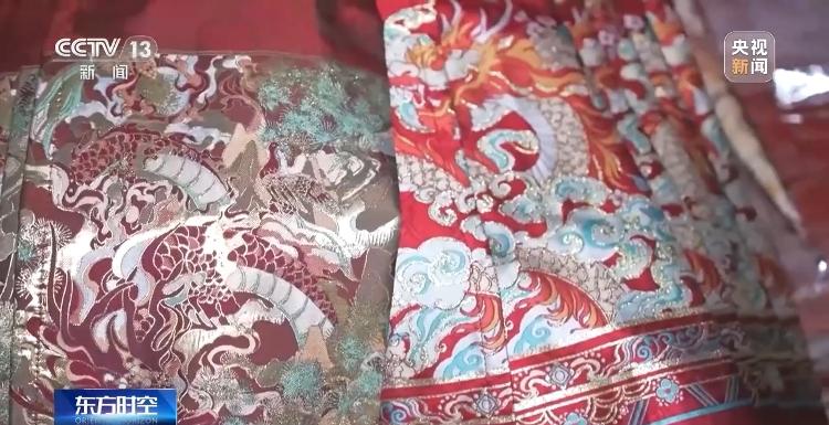 魏平安:因为今年过年是龙年,我们特意设计了两款比较好看的龙图案马面裙,没想到它们两个都爆了。这款就是比较直接一点,就是有一个很大的龙的刺绣加了一些龙纹,加了一些花、牡丹花之类的。