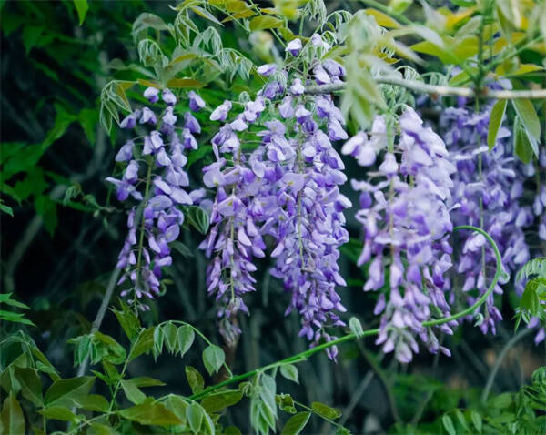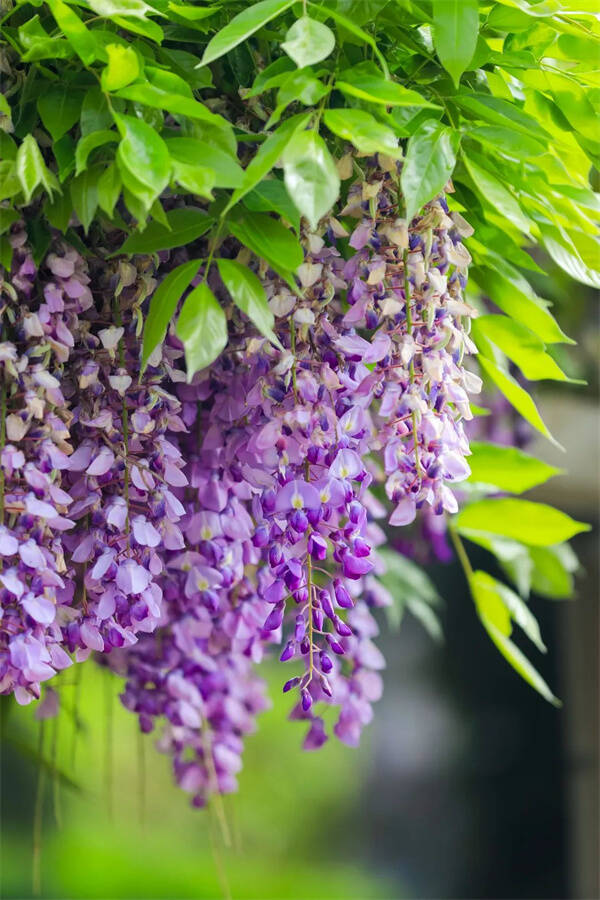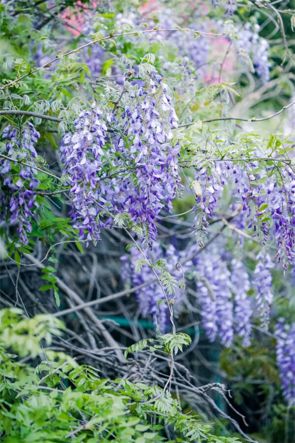 紫藤花开的美,常常不知道要怎么去形容。浓叶满架,盘盘旋旋,在这些花架之上那些盛开的紫藤,它们如同少女的发丝,柔美地垂落,带着淡淡的香气,仿佛在低语着春天的秘密。