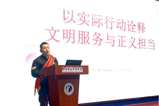“凝心铸魂 齐心筑梦”——在山东交通职业学院宣讲现场,既有实现了多项全球首创技术的山东港口青岛港青岛新前湾集装箱码头有限责任公司党委委员、总经理助理修方强,也有坚守一线服务31年的东航山东分公司客舱服务部副总经理王慧。其中,来自潍坊的滴滴网约车司机张晓明,凭借连续6年文明驾驶零违章的经历让人印象深刻。