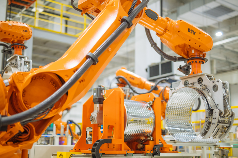 图:海尔高端柔性洗衣机智能工厂内筒生产环节