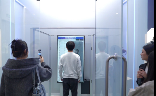 在3D智能量体区,3D系统360度扫描人体,采集人体36处关键部位数据,再通过算法为顾客量身定制服装。