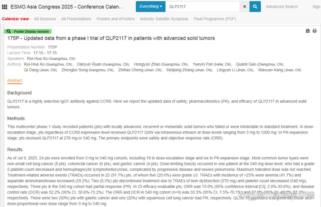 QLP2117:CCR8抗体治疗晚期实体瘤临床数据受关注