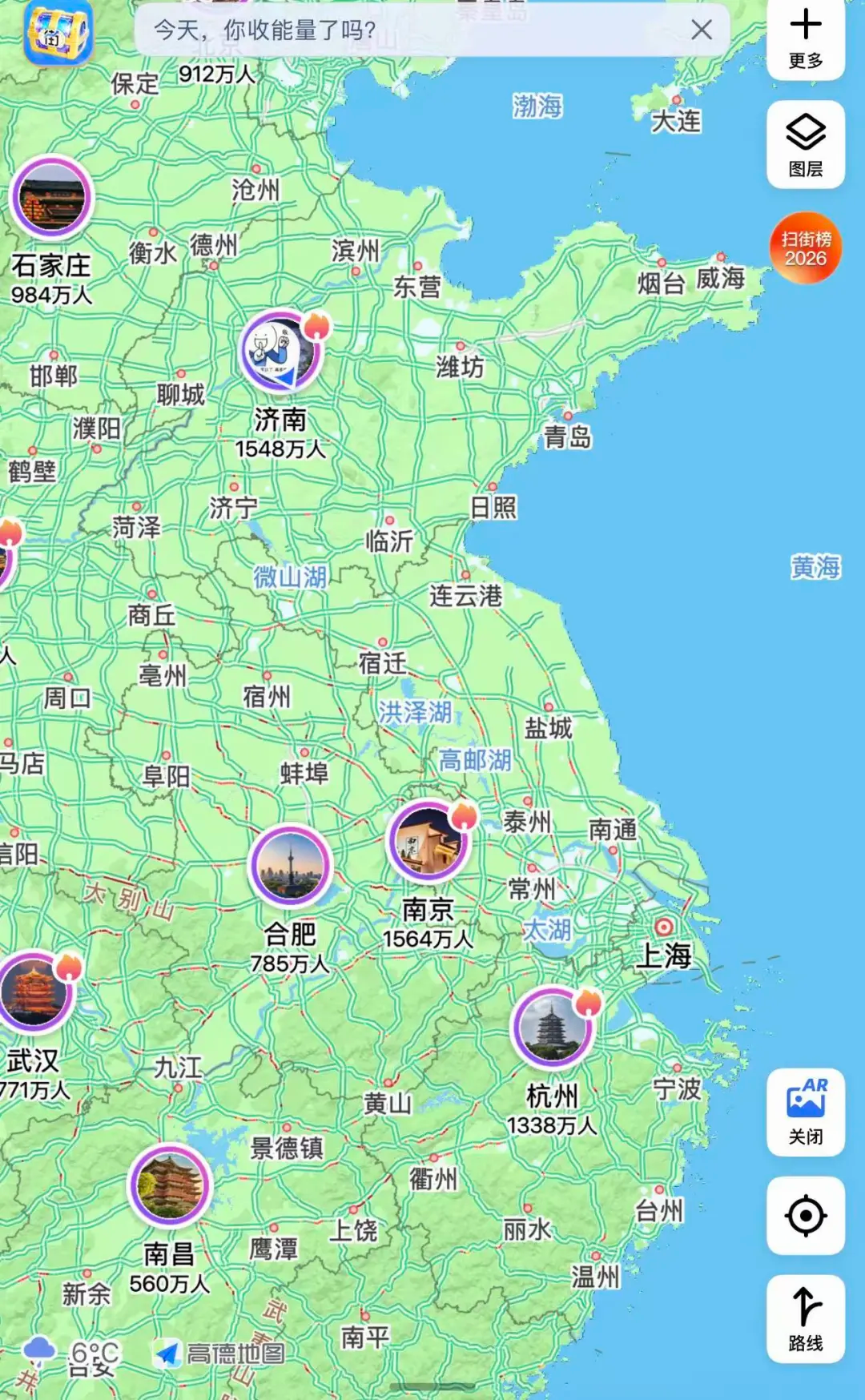 这个春节假期,济南客流量激增,跻身春节旅游热门目的地省会城市 TOP2(数据来源:高德地图)。据济南文旅官方数据统计,截至 2 月 23 日 14 时,全市 30 家重点监测景区共接待游客 623.2 万人次,较去年春节同期增长 48.9%,文旅市场迎来全面爆发。