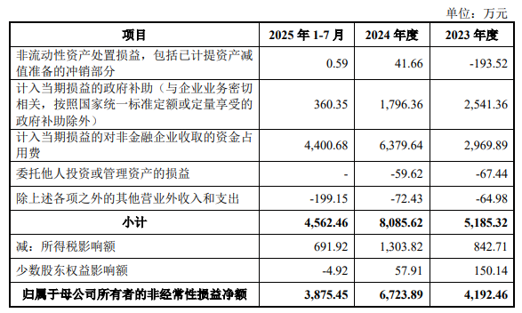 报告期内,宝德计算归属于母公司所有者的非经常性损益净额分别为4192.46万元、6723.89万元、3875.45万元,其中2024年该净额占归母净利润的比例达35.91%,主要来源为原实控人资金占用的利息收入以及计入当期损益的政府补助。
