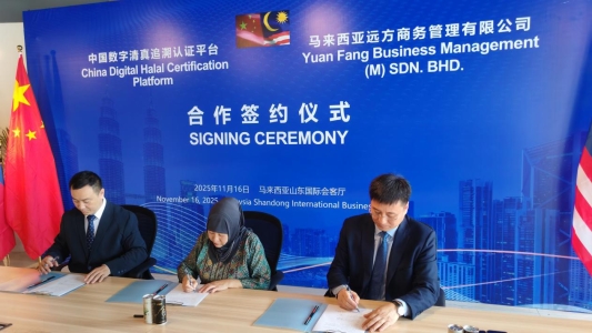11月16日,中国数字清真追溯认证平台与马来西亚远方商务管理有限公司、中展国际商务有限公司在吉隆坡成功举行合作协议签约仪式,共同宣告“马来西亚山东国际会客厅清真产业专业委员会”正式启动。经各方共同推举