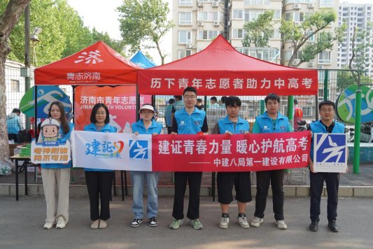 6月7日,中建八局一公司开展“爱心护考,筑梦起航”高考志愿服务活动,在山东省实验中学中心校区、山东省济南济微中学、章丘实验中学等7个考点设置志愿服务站。
