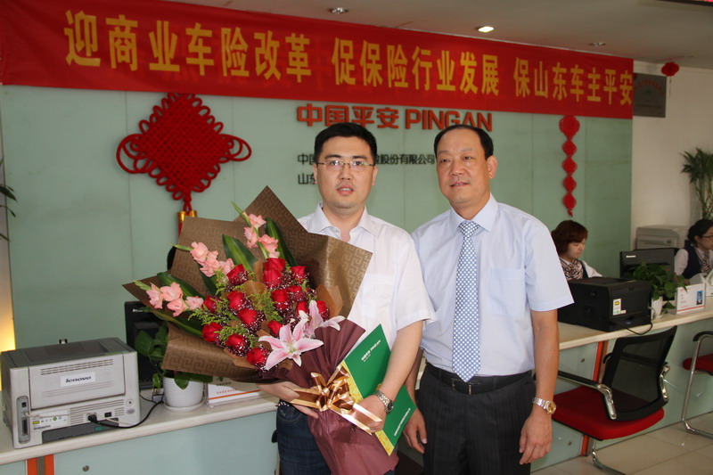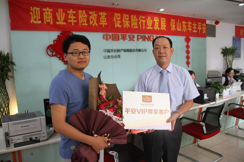 中国邮政速递物流股份有限公司山东省分公司作为平安产险山东分公司第一单团体客户,今年续保的商业险保费下降了26.9%。5月30日,平安产险山东分公司总经理史振波亲自分别为第一单个人客户和团体客户送上保单,并特别赠送了平安VIP尊享客户的荣誉卡,以方便客户更好的体验平安产险的贴心服务。